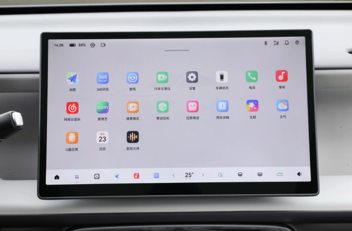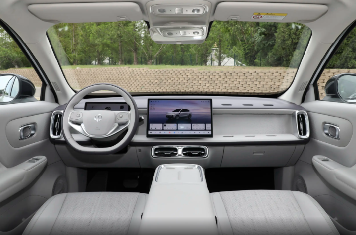 相比外观设计,零跑B10的内饰设计更显独特。这款车型的内饰设计整体看起来也属于简约风格,但是它的中控台上设计了大面积的内凹部分,并且用金属材质装饰,在一定程度上,让人感受到精致感。可惜零跑B10座舱内部的软质材料虽然不少,但品质并不是很高,所以看起来档次感并不是很高。好在零跑B10标配的14.6英寸中控屏看起来科技感挺强,在高通骁龙8155/高通骁龙8295芯片的支持下,也让消费者得到流畅且多样化的智能互联体验。