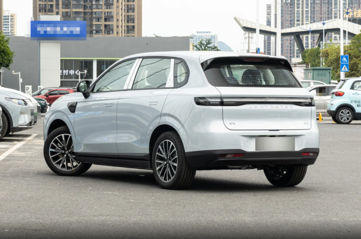 零跑B10的侧面使用相对沉稳的线条装饰,除去隐藏式门把手之外,并没有什么显眼的潮流设计元素。不过凭借内凹的侧裙设计和轮眉设计,还是能够让消费者感受到很强的立体感。在车尾处,零跑B10使用熏黑的贯穿式尾灯,与尾部多条横线一起,增强层次感和立体感,扰流板和后包围的黑色饰板,也展现出一些运动属性。
